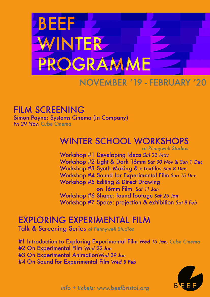 “I was over the moon to receive BEEF’s Winter Workshop Bursary at the end of last year the colourful program was a hands on crash course in analogue experimental cinema and sound. Over the course of the workshops we met many of the BEEF members as they shared their specific areas of interest and expertise.