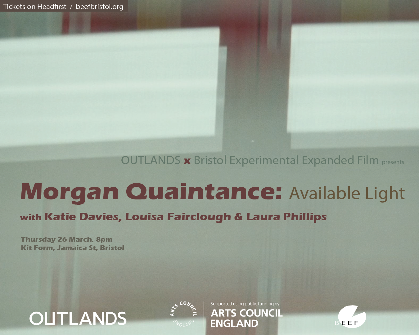 The event will include an introduction to Available Light, followed by a discussion with Morgan and members of BEEF exploring diverse forms and modes of presentation across film, performance, and live expanded practices. The conversation will consider how these approaches operate across cinematic, performative, and responsive contexts, while engaging with questions of liveness, materiality, and experience.