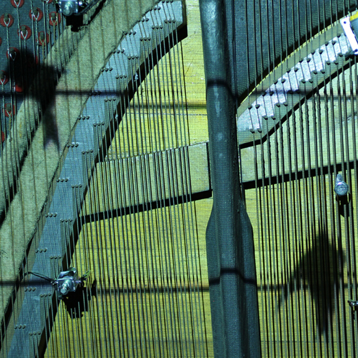 Support comes from BEEF member Kathy Hinde with long term collaborator Matthew Olden (aka i am the mighty jungulator). Kathy will bring her installation Piano Migrations which recycles the inside of an old upright piano into a kinetic sound sculpture. Videos of birds are projected directly onto the piano to provide an ever-changing musical score. The movement of the birds trigger small machines to twitch and flutter on the piano strings. In this work, nature controls machines to create delicate music.  This evening, the installation will become a site for an experimental improvisation where Kathy will be joined by Matthew Olden, performing with his own custom made live sampling software. Together they create a performance where image becomes sound and sound becomes image through a series of transformations realised through acoustic sound, live sampling, automata and projections.