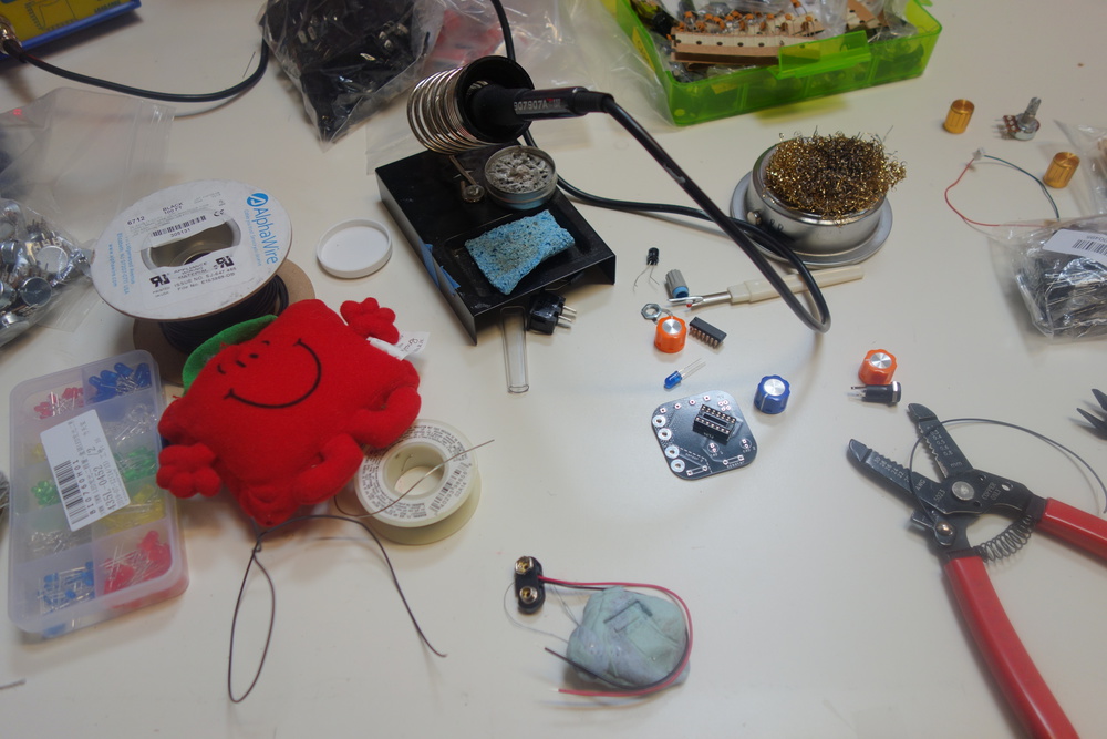 This workshop does not require prior technical experience. Our aim is to make DIY electronic music more accessible and to have fun making. Participants will solder and assemble their own noise makers, embedding them inside a soft toy (or another object of choice). PRRRRRT‘s approach will be hands on, and while they will talk about the basic components of the circuit and how they are making and changing the sound; the main focus will be on learning through listening. The synths will all sound a bit different depending on the choices people make during the workshop.